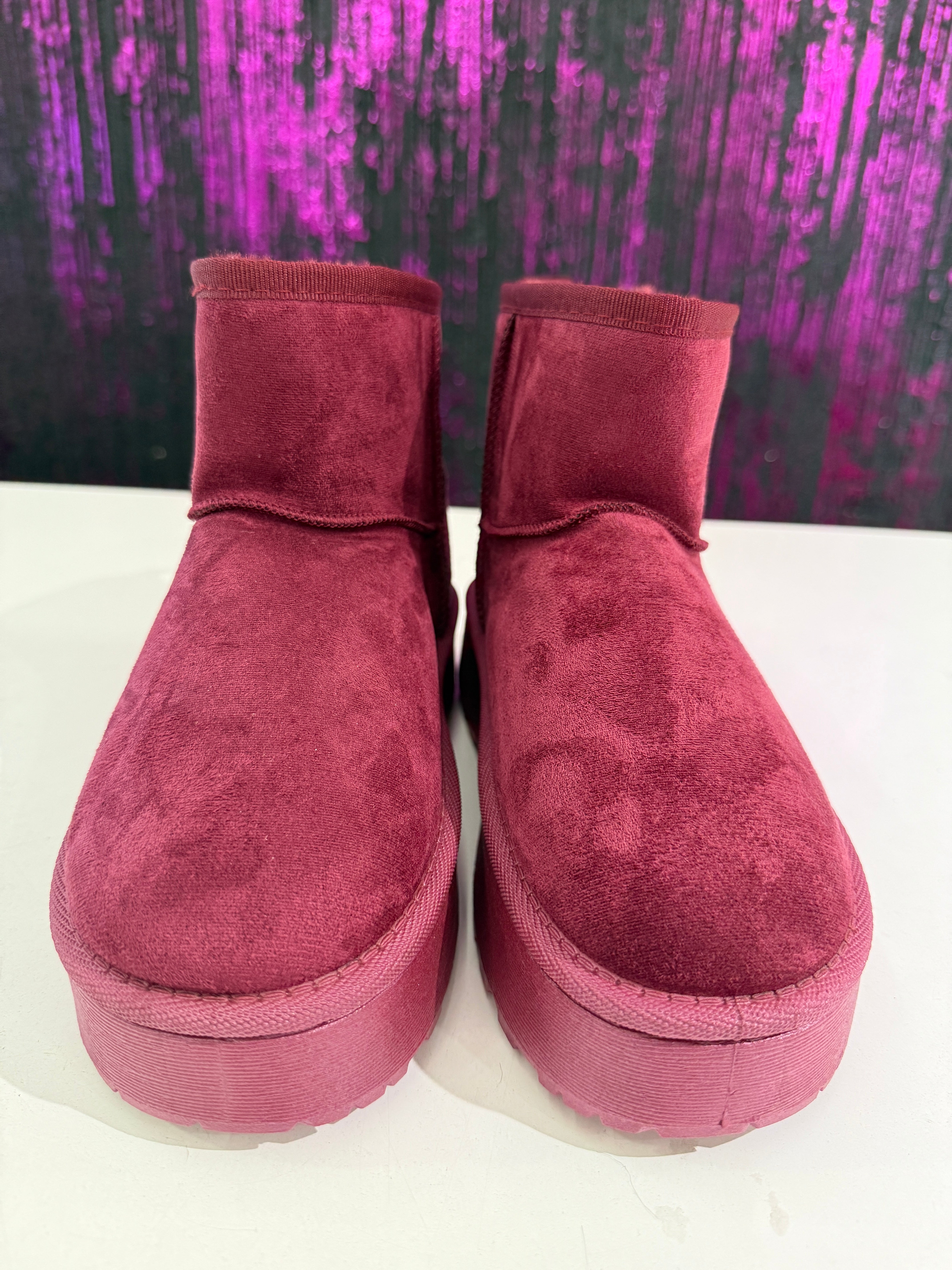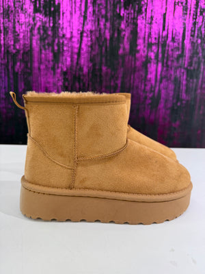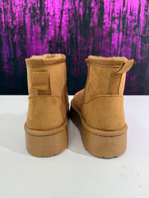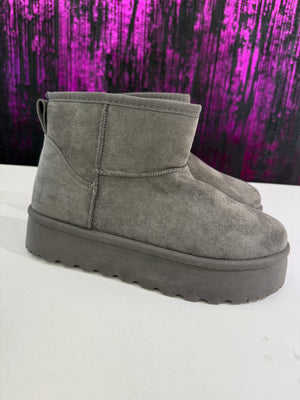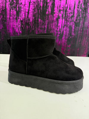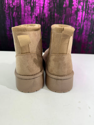 Stivaletto in ecopelle scamosciata con interno completamente rivestito in morbido pelo caldo. Modello alla caviglia con suola platform leggera e antiscivolo, ideale per le giornate fredde. Perfetto per look casual, sportivi e streetwear.