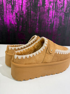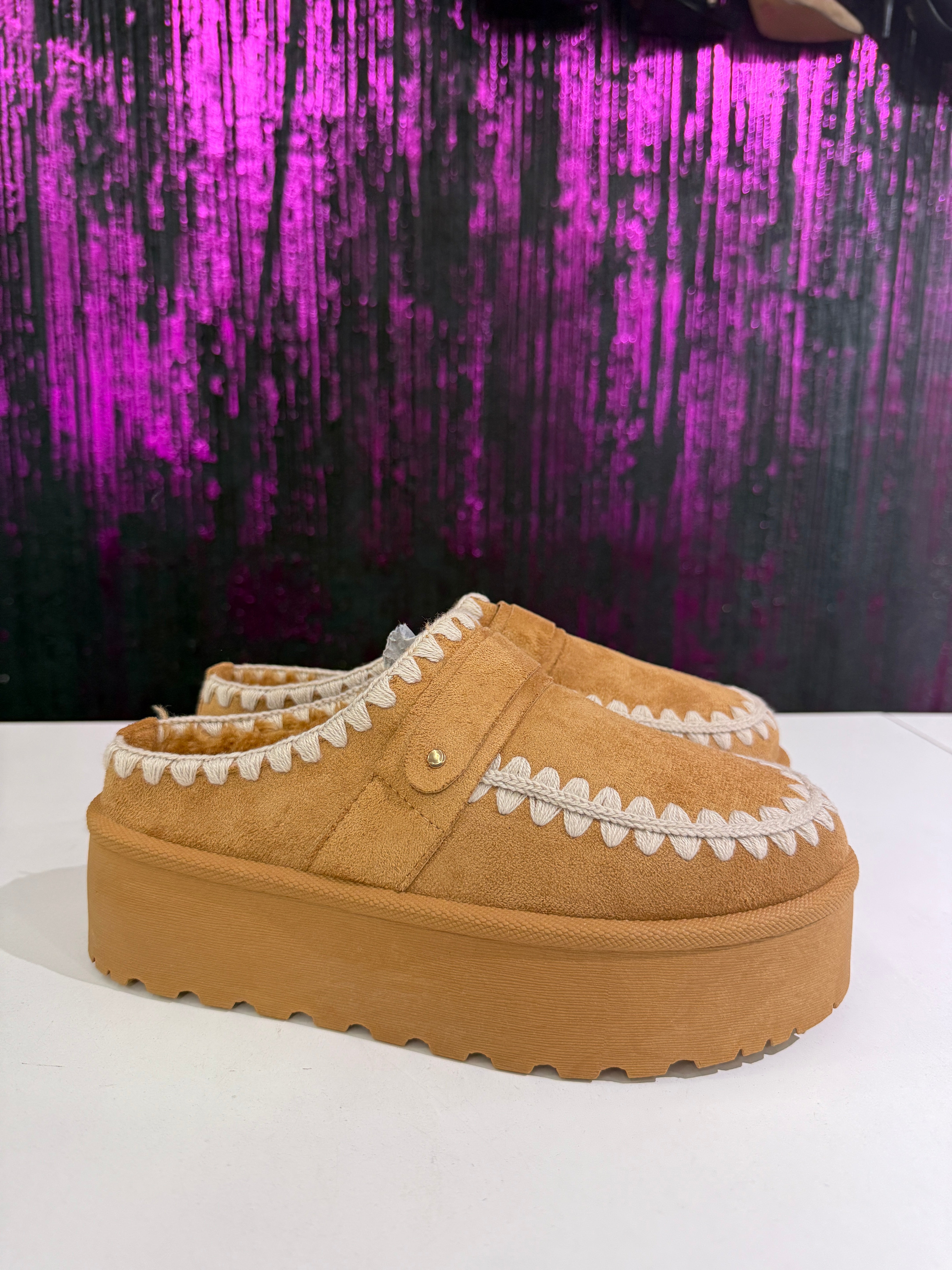 Scarpa bassa da donna dallo stile caldo e confortevole, realizzata in morbido effetto camoscio color cammello. L’interno è completamente foderato in ecopelliccia, ideale per affrontare le giornate più fredde con il massimo comfort. Il dettaglio delle cuciture decorative a contrasto dona un tocco artigianale e di tendenza. La suola platform assicura stabilità e slancio senza rinunciare alla comodità.