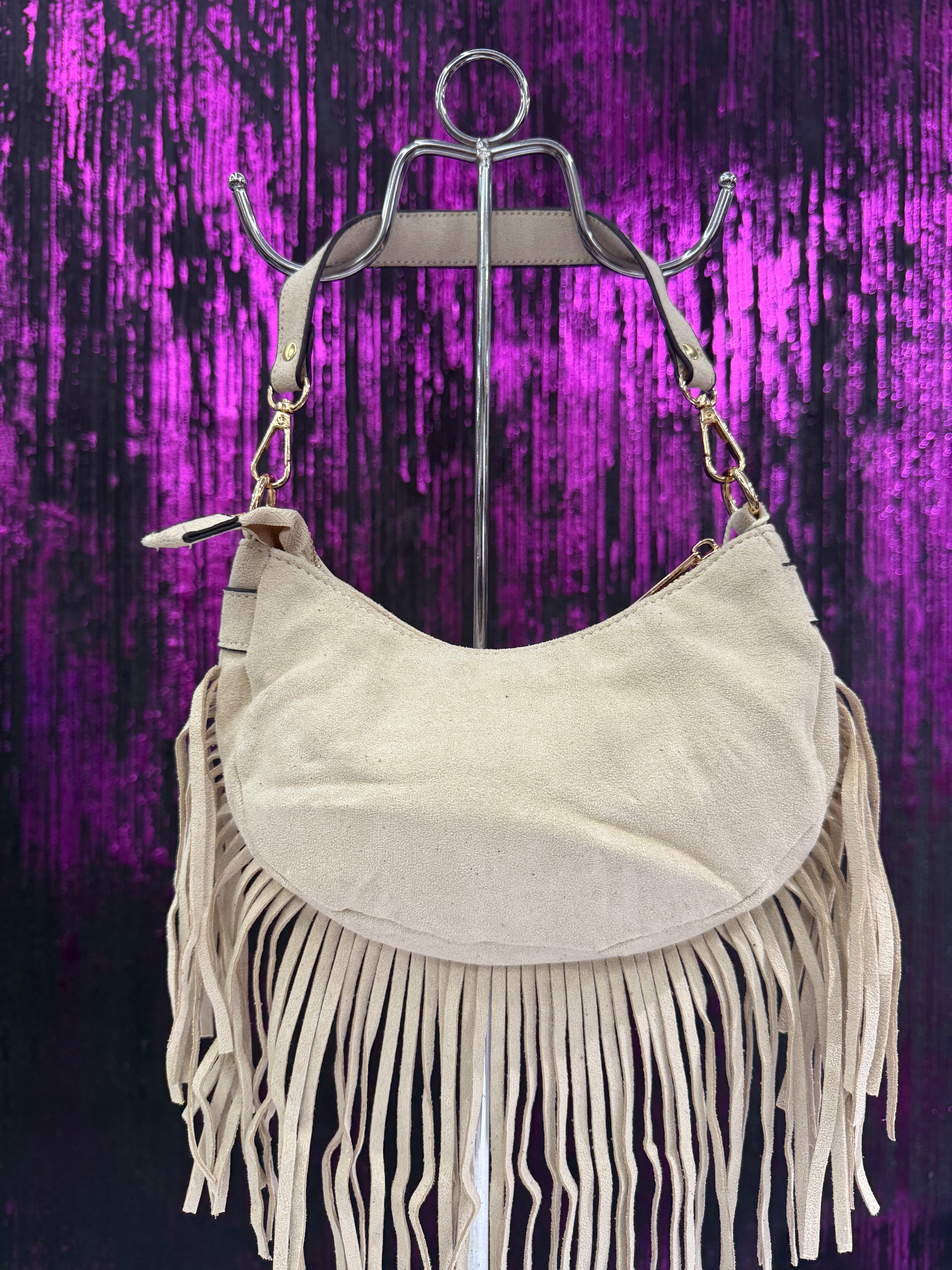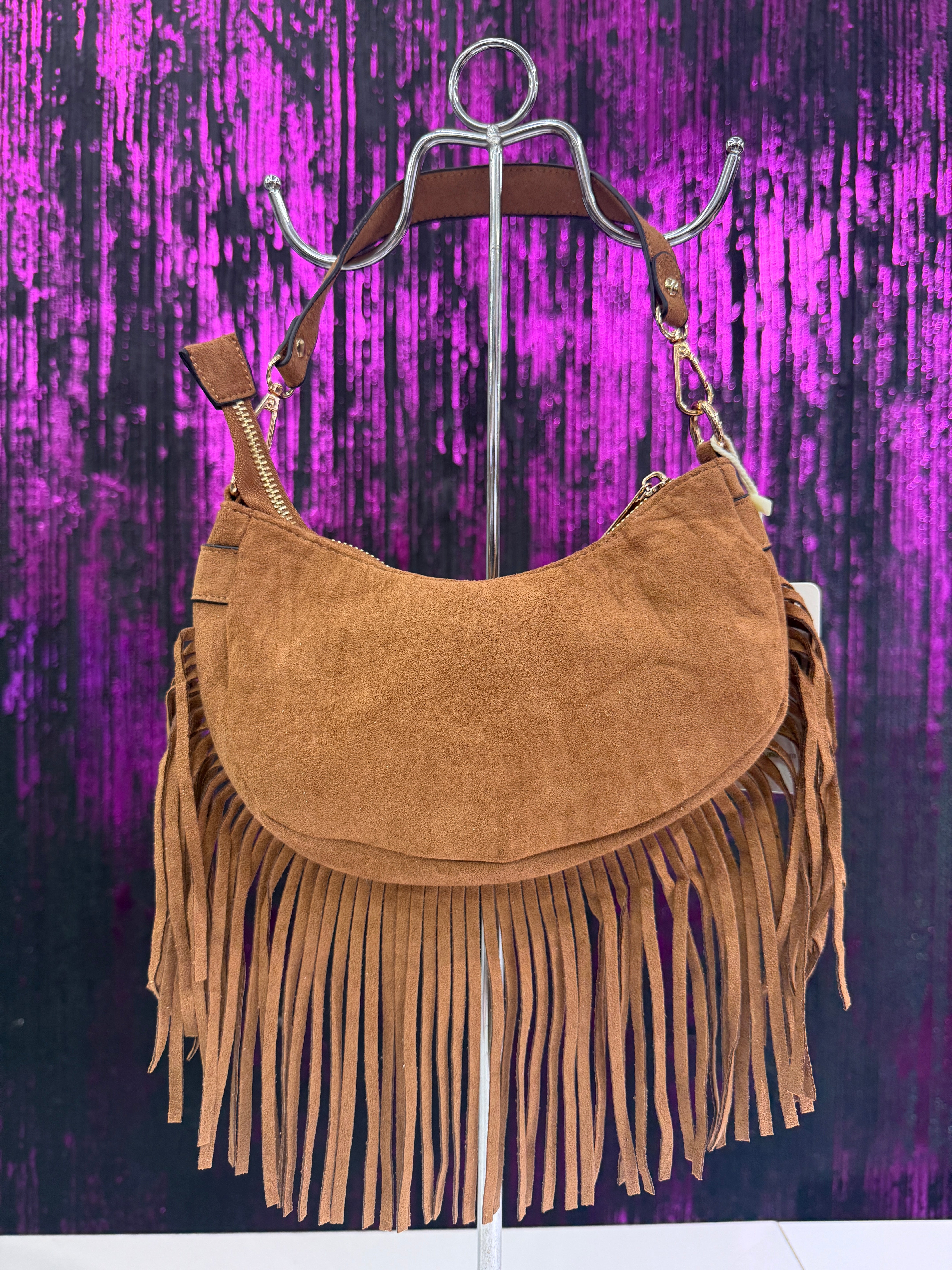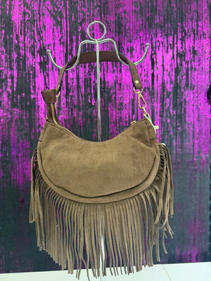 Borsa a Spalla in Camoscio con Frange