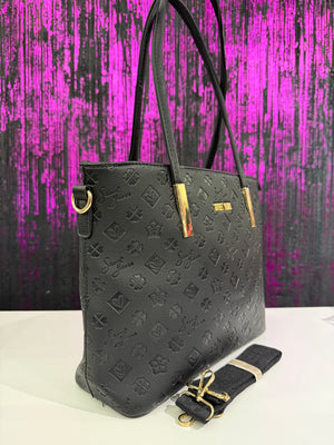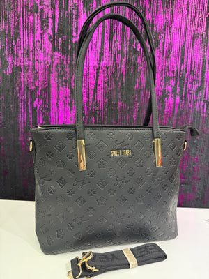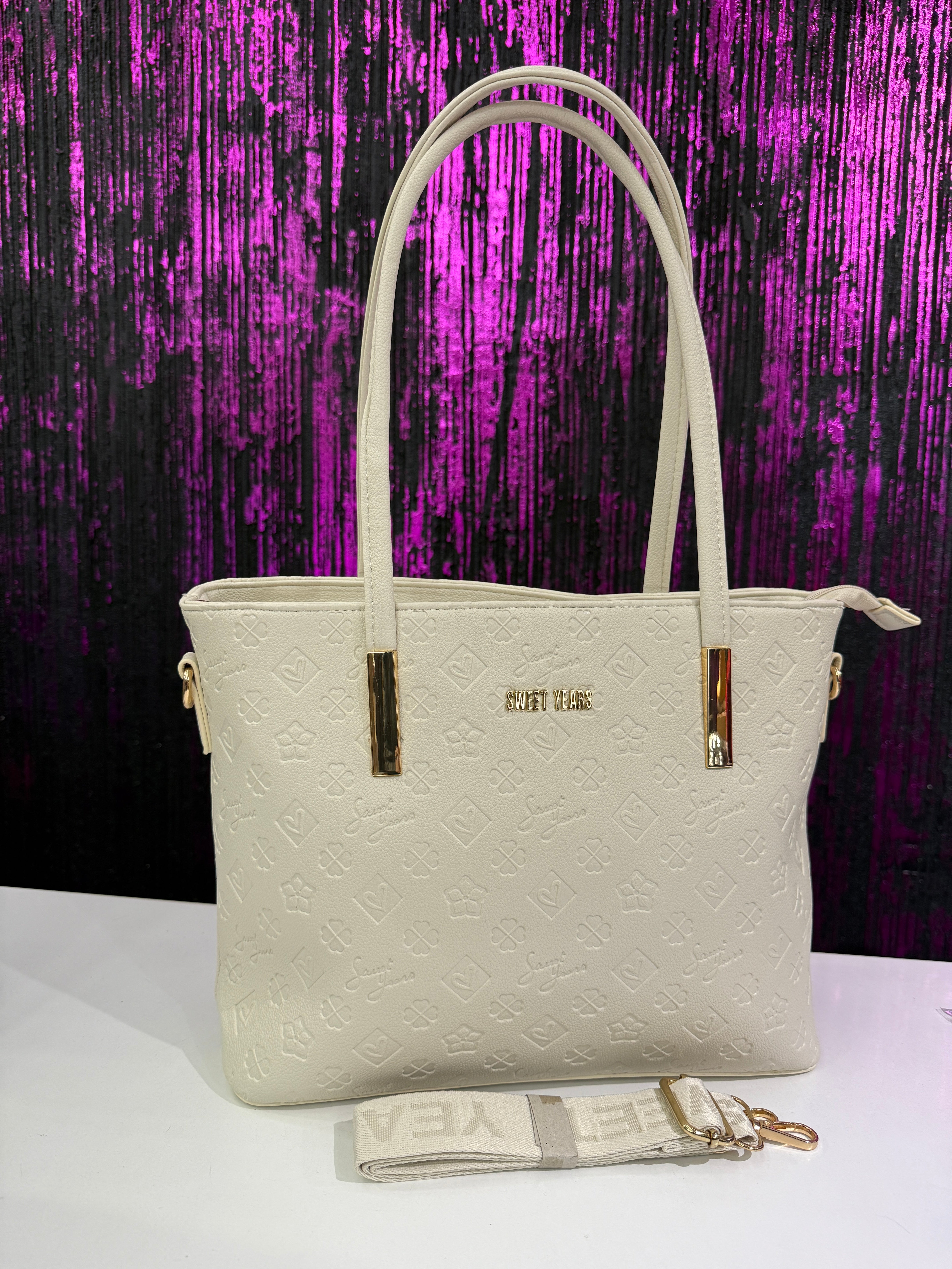 Borsa donna Sweet Years in versione elegante e versatile, realizzata in ecopelle di alta qualità con lavorazione monogram a rilievo su tutta la superficie. Il design essenziale ma raffinato è impreziosito da dettagli metallici color oro e dal logo Sweet Years applicato frontalmente. Una shopper capiente e funzionale, ideale per accompagnare la donna moderna durante tutta la giornata.