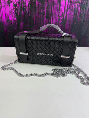 Borsa da donna Enrico Coveri dal design elegante e strutturato, realizzata in materiale effetto pelle martellata. Dotata di manico superiore e tracolla a catena dorata removibile, è ideale per completare look raffinati da giorno e da sera.