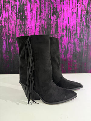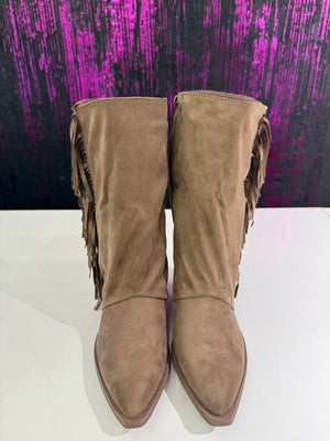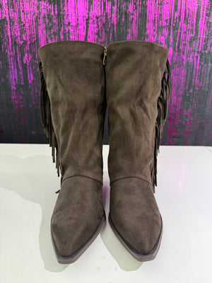Stivali Texani Donna Tacco Medio - Camoscio con Frange