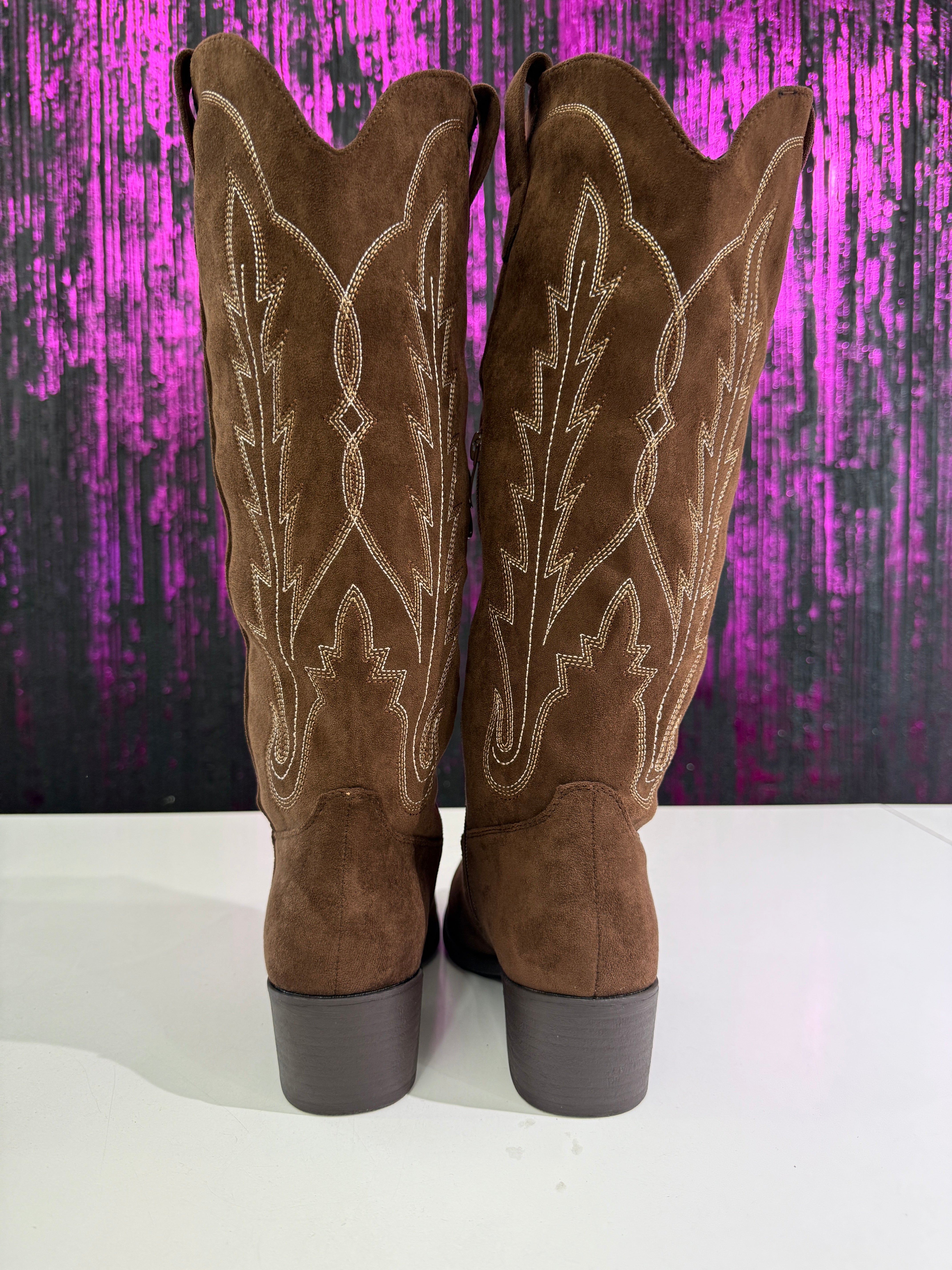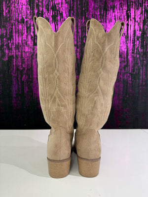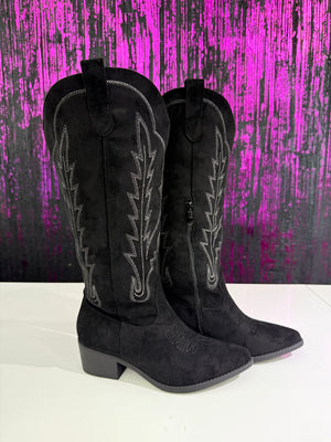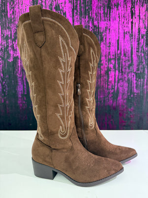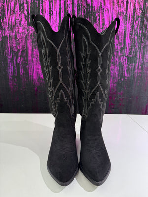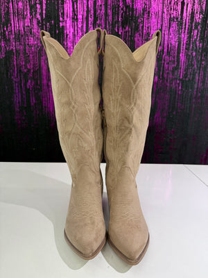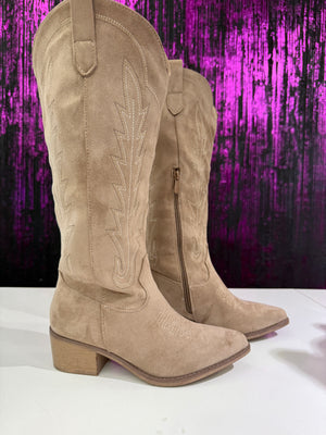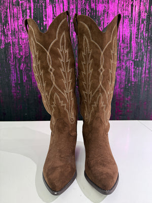 Stivali Texani Donna in Camoscio Ricamato - Tacco Medio