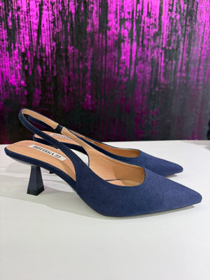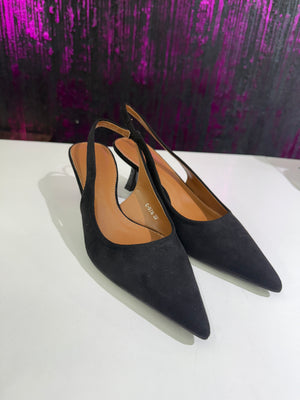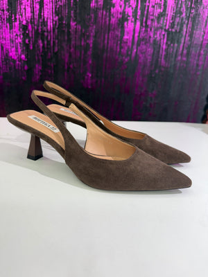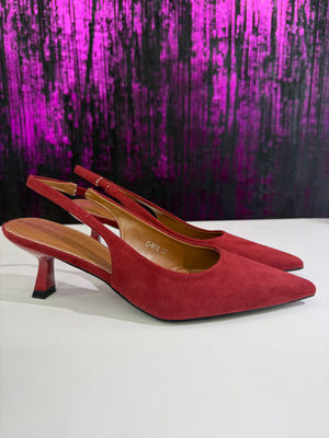 Slingback dal design femminile ed elegante, realizzate in morbido effetto camoscio. La punta affusolata slancia la figura, mentre il cinturino posteriore aperto garantisce una calzata confortevole e pratica. Ideali per completare outfit sofisticati sia da giorno che da sera.