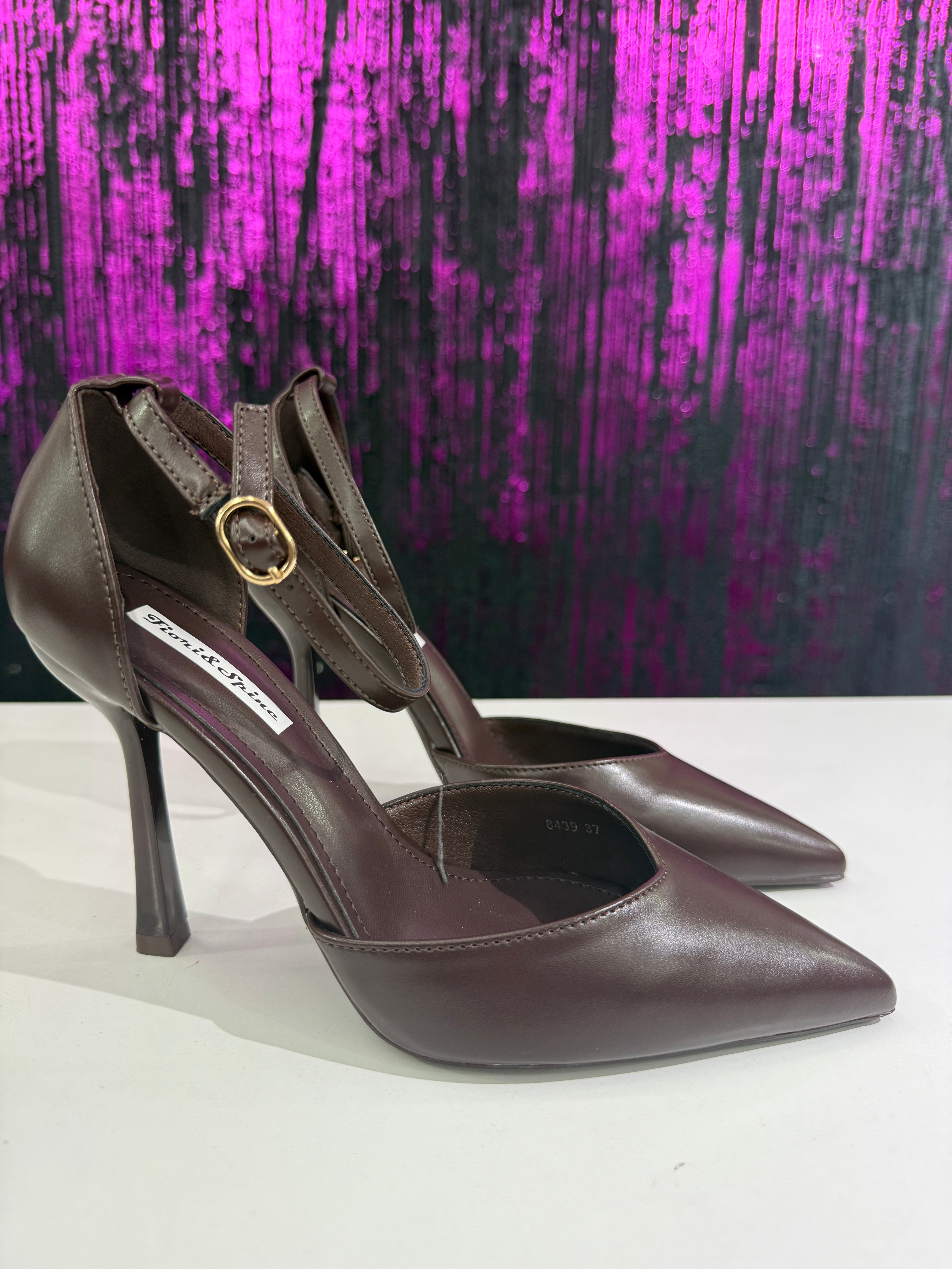 Décolleté elegante da donna caratterizzata da linea affusolata e punta a punta. Il design raffinato è impreziosito dal cinturino alla caviglia con fibbia regolabile che assicura stabilità e comfort. Il tacco alto a spillo slancia la figura, rendendo questa scarpa ideale per occasioni formali, cerimonie e look serali.