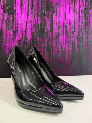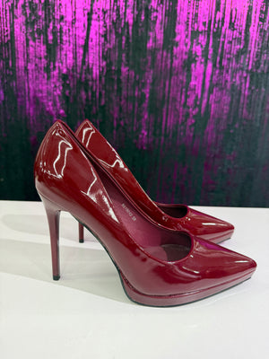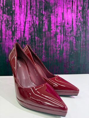 Décolleté elegante da donna in vernice lucida color bordeaux, dal design raffinato e femminile. La punta affusolata e il tacco a spillo alto slanciano la figura, rendendola ideale per occasioni speciali, cerimonie o look serali.
