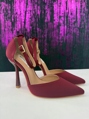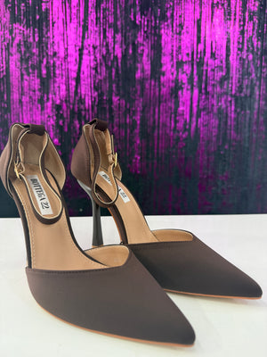 Décolleté elegante con design T-strap che valorizza il collo del piede e garantisce maggiore stabilità. Realizzata in ecopelle liscia color marrone scuro, presenta una linea pulita e sofisticata, ideale sia per outfit formali che per look da ufficio. Il tacco alto svasato slancia la figura mantenendo un buon equilibrio.