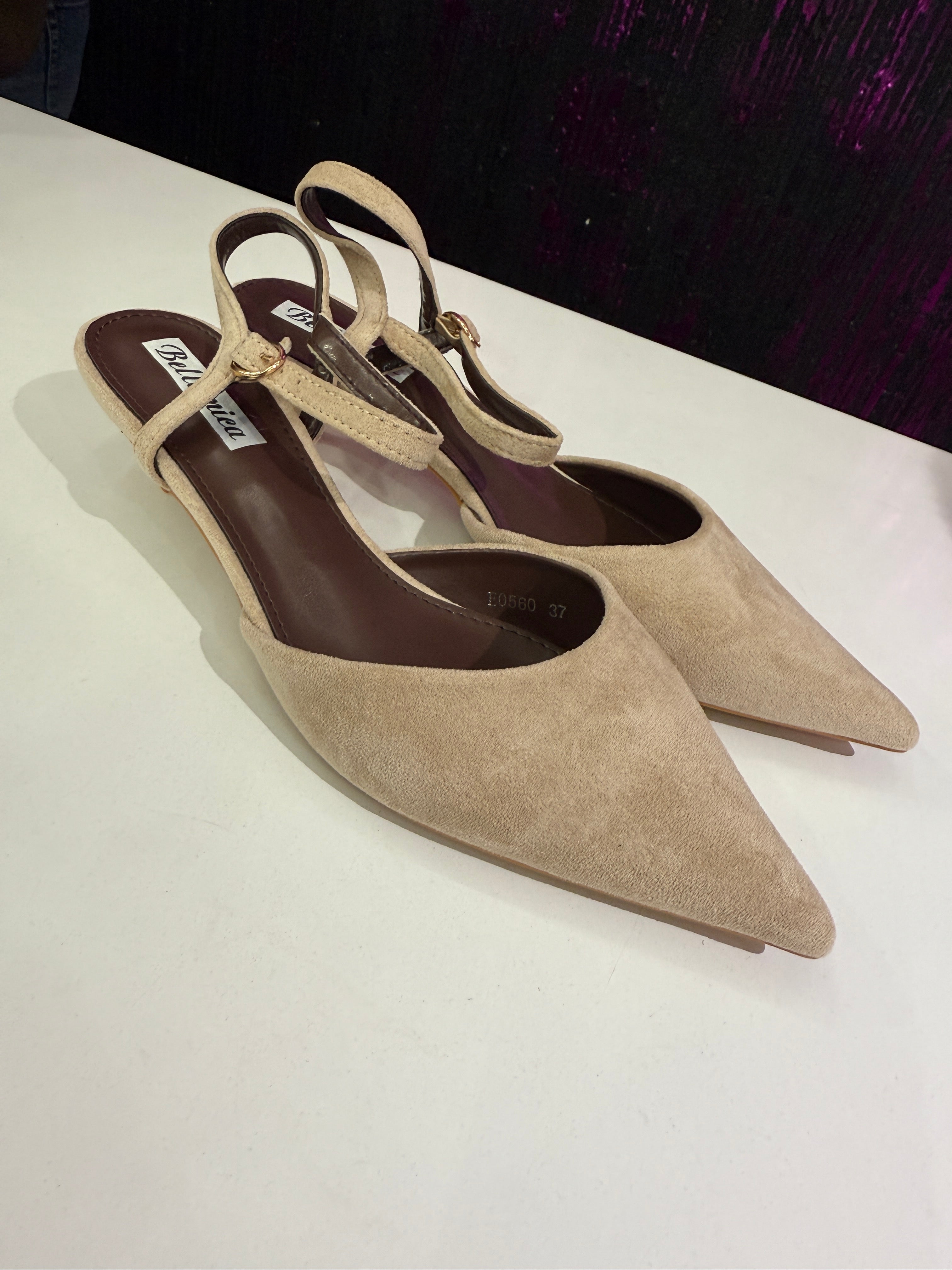 Slingback Marrone camoscio tacco piccolo