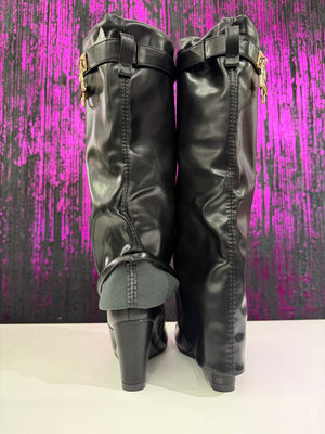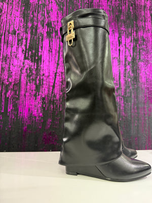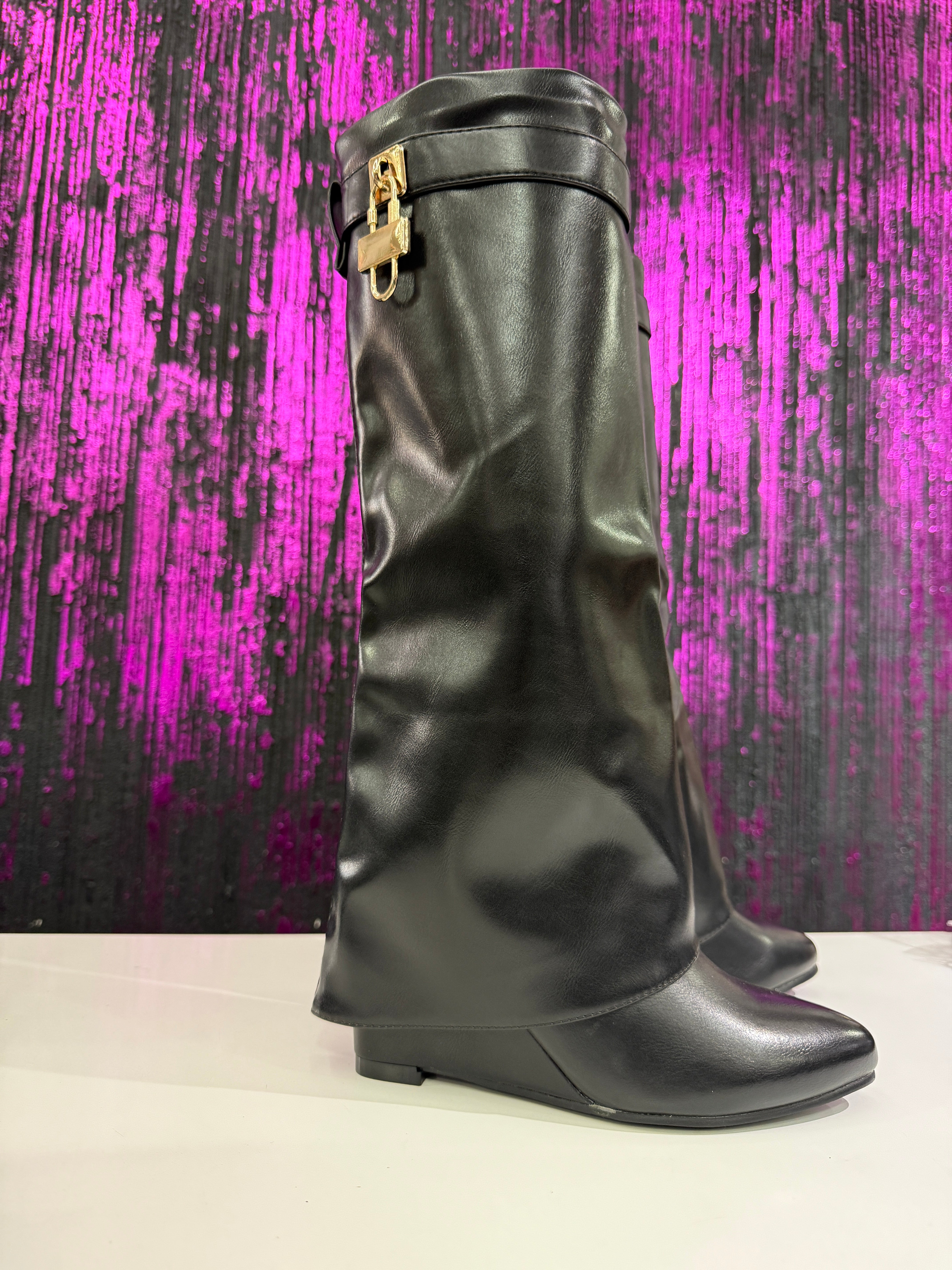 Stivale donna dal design elegante e contemporaneo, caratterizzato da una linea morbida sulla gamba e da un raffinato dettaglio metallico decorativo nella parte superiore. Un modello versatile e femminile, perfetto per completare outfit quotidiani e look più ricercati con un tocco di classe.